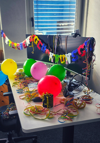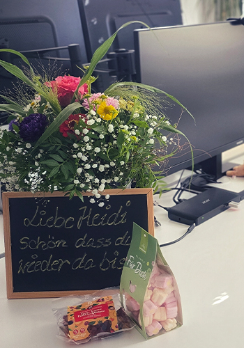 Selbst wenn der Schreibtisch mal voll ist: Wir verlieren nie den Humor und halten uns gegenseitig den Rücken frei. Für mich fühlt sich das Team nach all den Jahren wie eine zweite Familie an!“